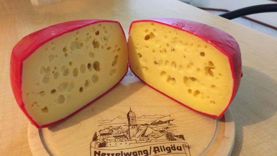 You can purchase spectacular, home made artisan cheeses like this magnificent Jarlsberg cheese.